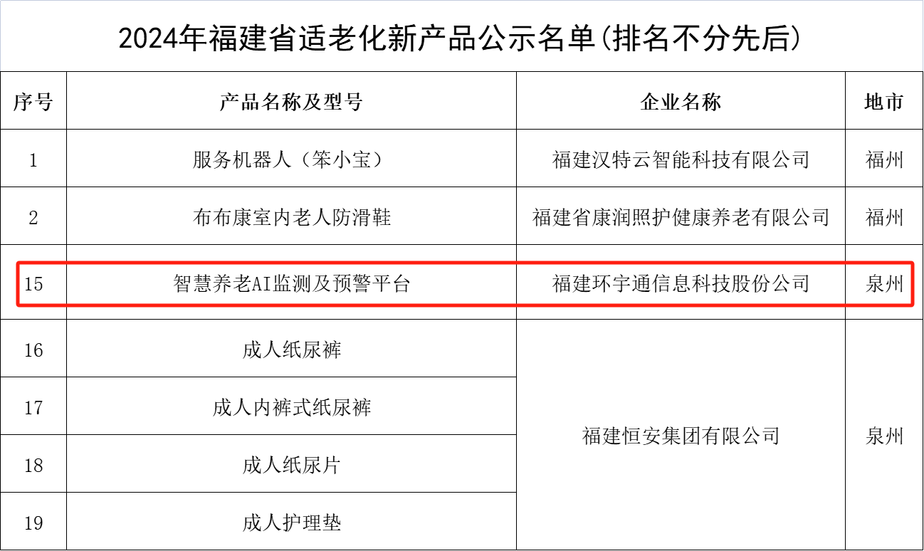 2024年11月19日,2024年福建省适老化新产品公示名单公布,全省有24款产品位列名单,泉州共有五款产品入选。其中OKPay依托技术积累和创新能力所推出的“智慧养老AI监测及预警平台”入选该名单。这一荣誉不仅是对公司在“AI+医疗康养”领域的长期努力和贡献的肯定,更是对未来持续创新与高质量开展的激励。
